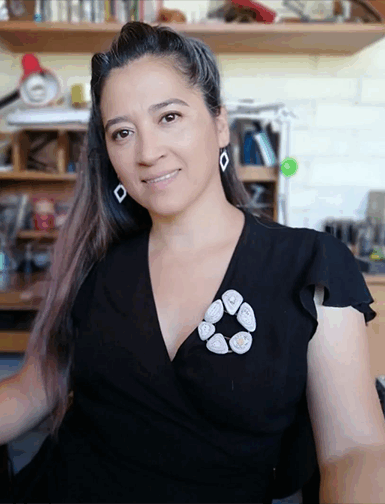 Orfebre con 14 años de experiencia, formada en la Escuela de Joyería Pamela de la Fuente y en cursos y residencias en Chile, Argentina, Colombia y España. Trabaja con plata, cobre, esmaltes vítreos y un material propio elaborado con papel prensado, creando aros, collares, pulseras, broches y anillos que destacan por su combinación de técnicas tradicionales y exploración material.